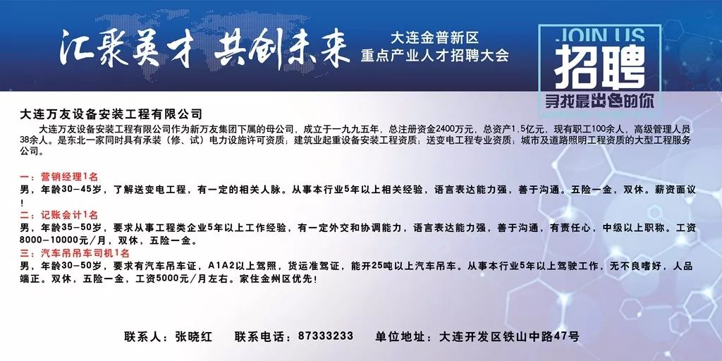 轉載請注明來(lái)自馬鞍山市深藍光電有限責任公司,本文標題:《大連后鹽招聘最新資訊》
